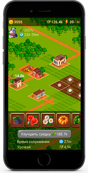Убирай свои поля и помогай соседям, играя в "три в ряд" мини-игры. Инвестируй монеты в банк и получай более
